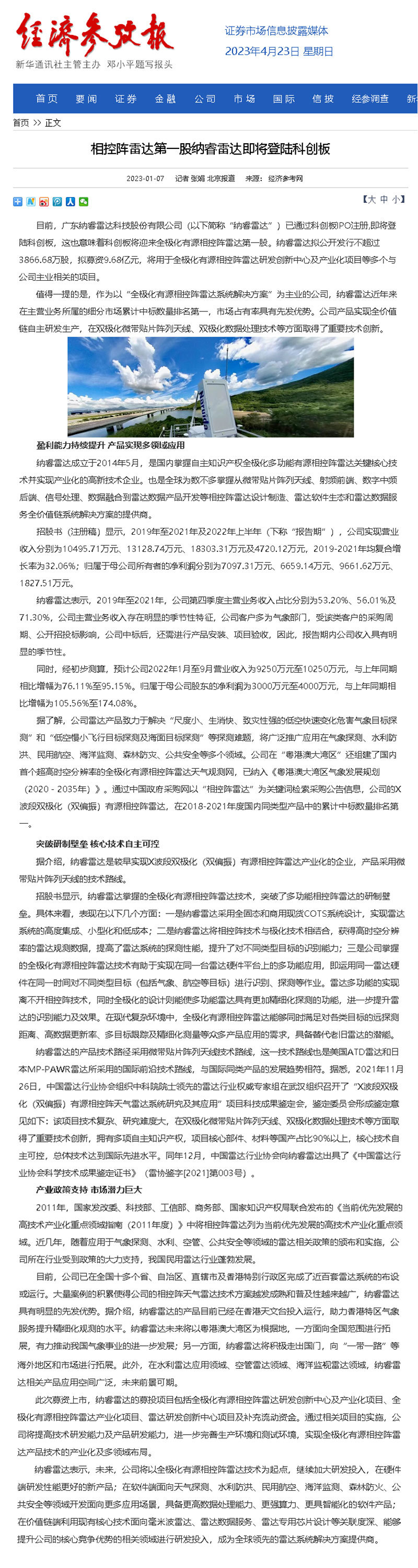 相控阵雷达第一股纳睿雷达即将登陆科创板