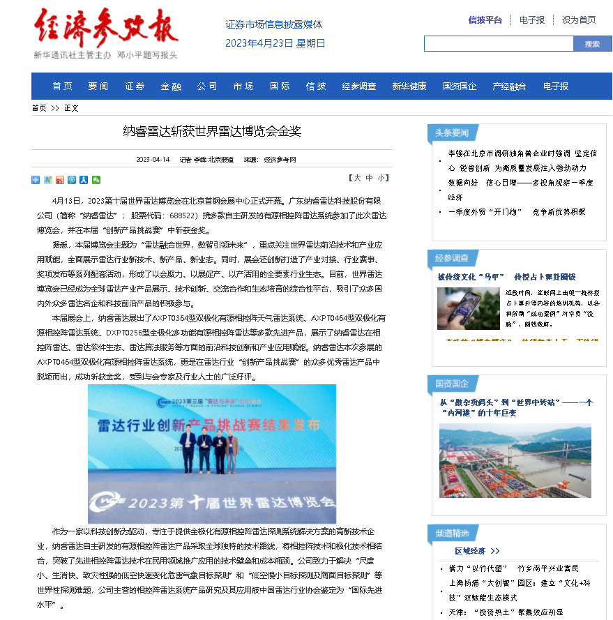 4月4日,《中国水利报》聚焦报道《纳睿雷达以“硬科技”产品创新助力江河安澜》文章,深度解码相控阵水利测雨雷达如何以“科技创新”筑牢雨水情监测预报预警“第一道”防线,助力守护江河安澜,引发社会各界广泛关注。