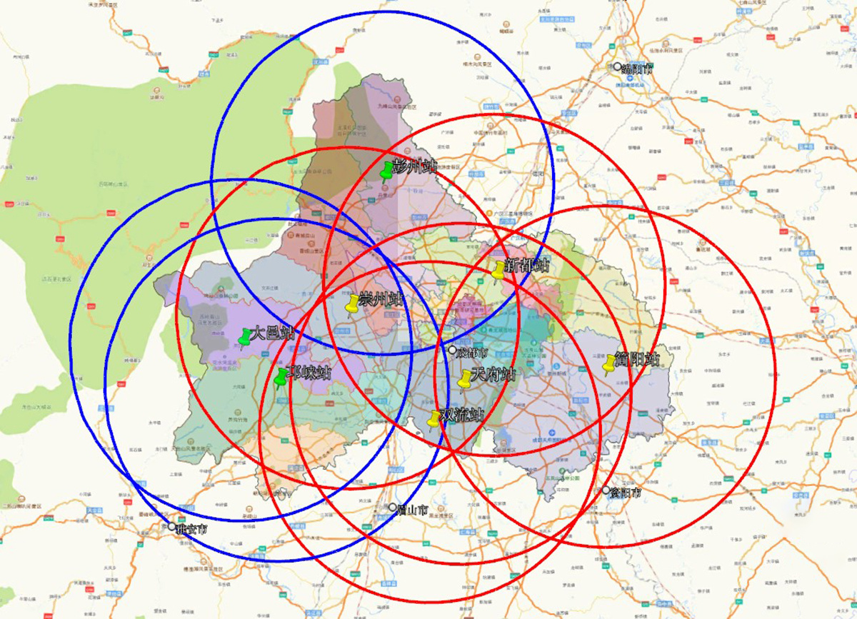 图为纳睿雷达覆盖成都全域的8台相控阵天气雷达