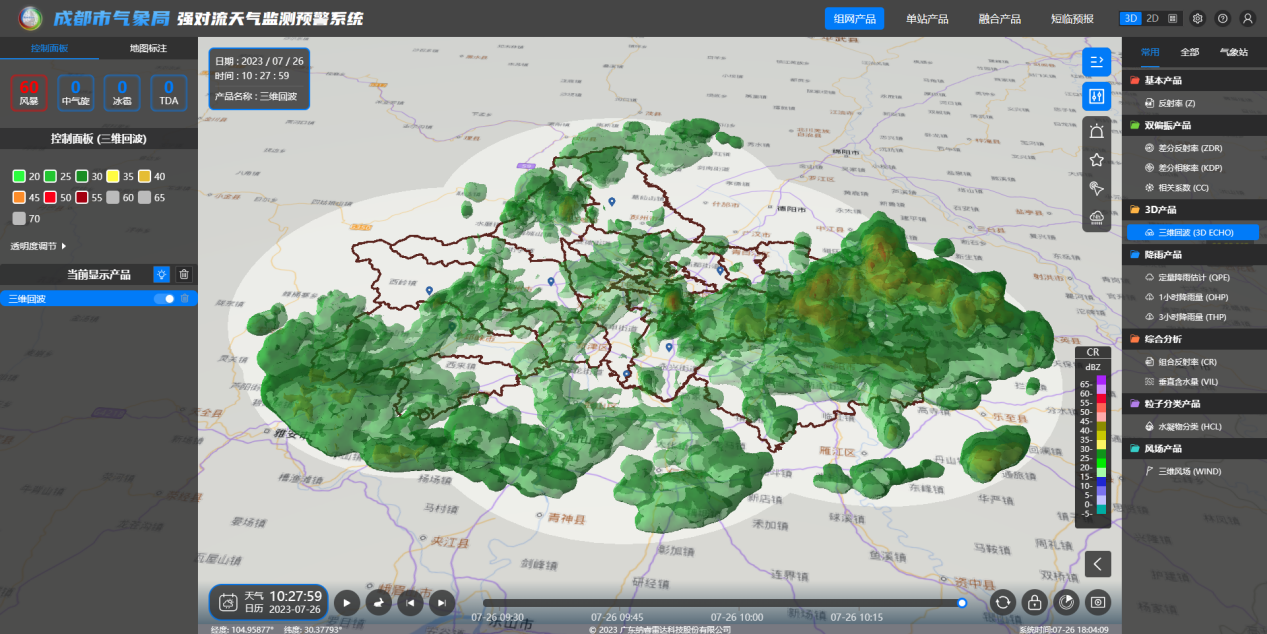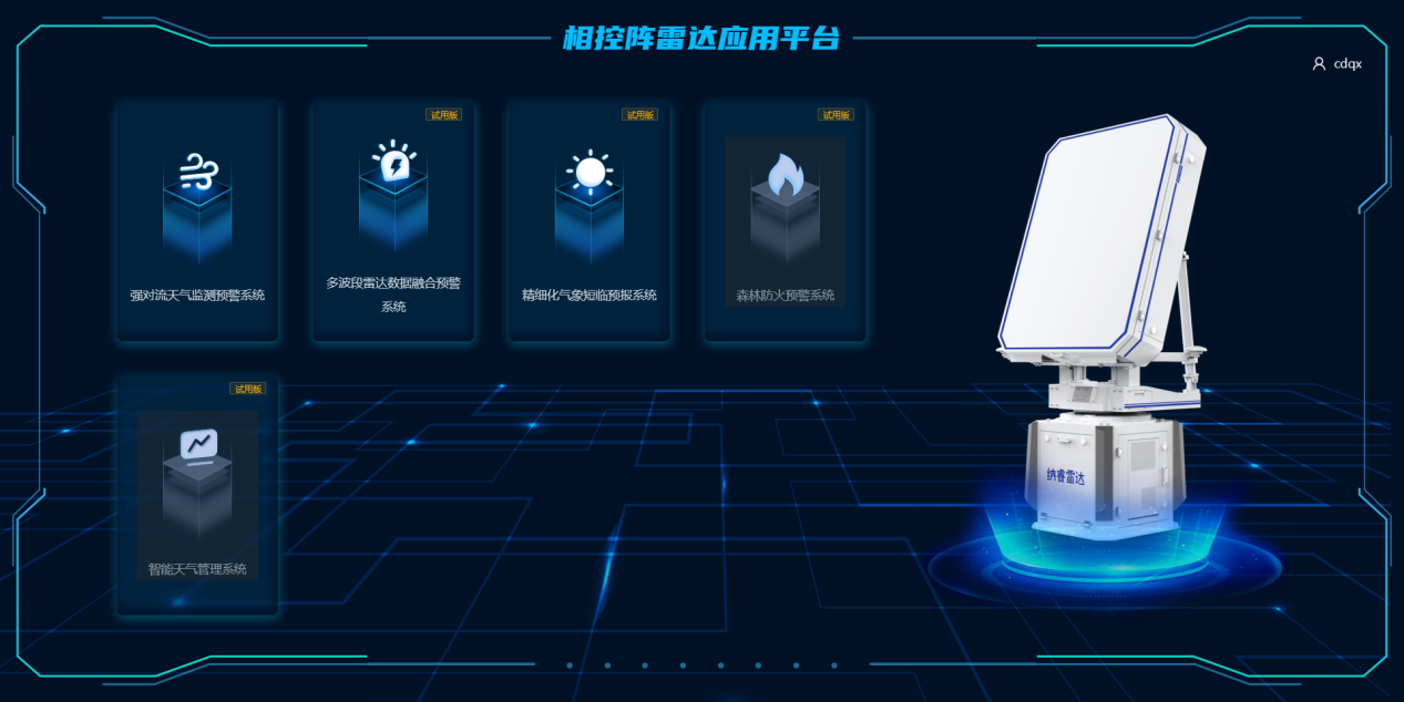 纳睿雷达一体化相控阵雷达应用平台,能够为客户提供多种雷达气象应用服务。
