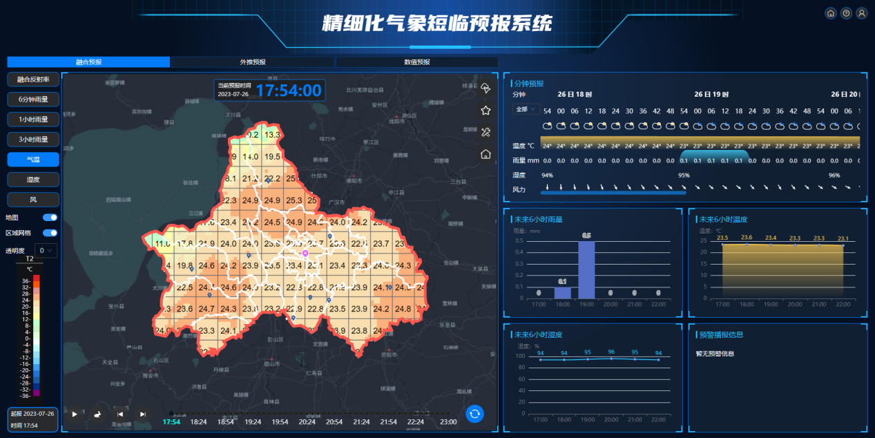 精细化气象短临预报预警系统能够实现0-6小时分钟级精细化网格预报,为赛事气象服务提供精准定量预报产品。